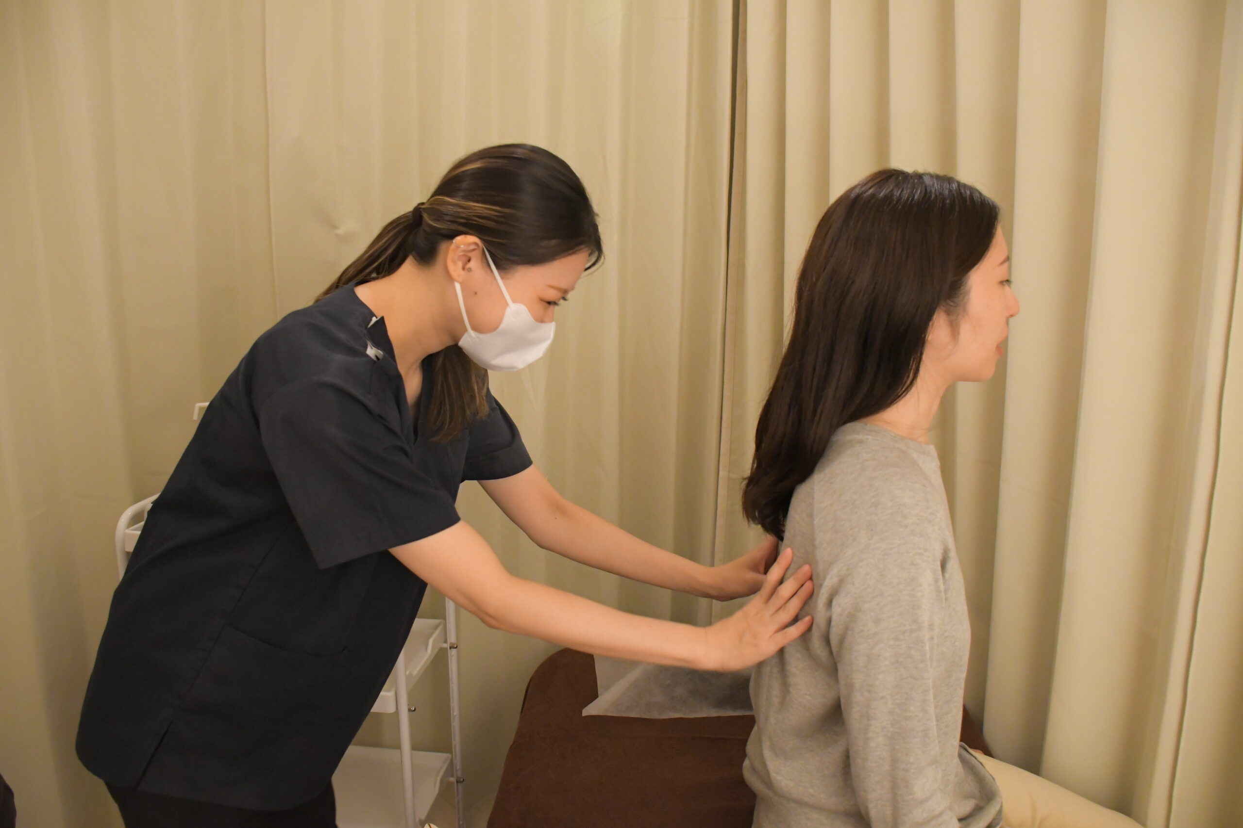 現在のお悩みや症状、ライフスタイル、既往歴などについて詳しくお伺いします。さらに姿勢観察や触診、徒手検査などを用いて、原因を探っていきます。